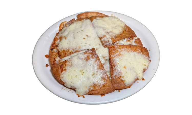 Crispy flour tortilla with charbroiled top sirloin or chicken breast strips, onions, green peppers, tomatoes, and cheese.