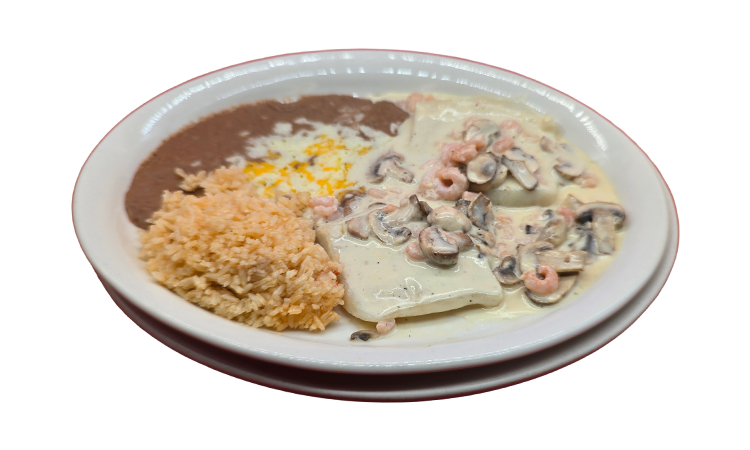 In a creamy sauce, mushrooms and baby shrimp $18.95