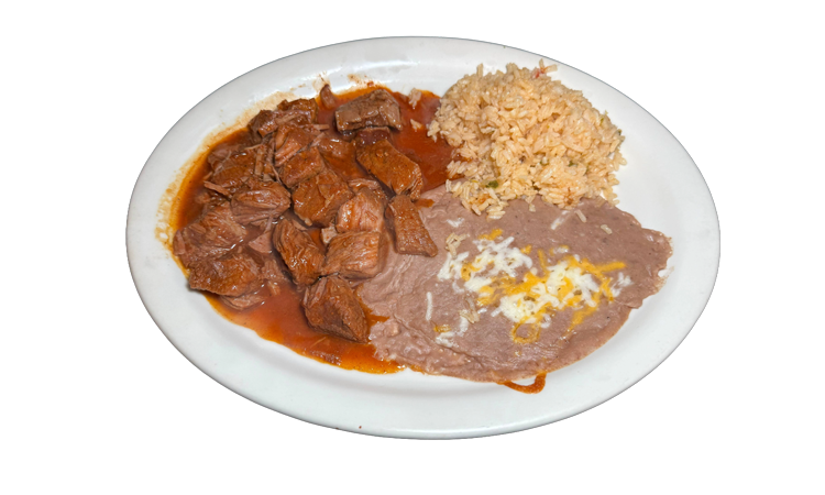 Chunks of beef cooked in a delicious special red chile sauce. $17.25
