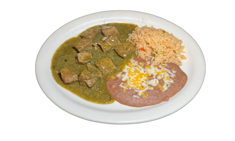 Chunks of pork cooked in a delicious roasted garlic and tomatillo green sauce. $17.25