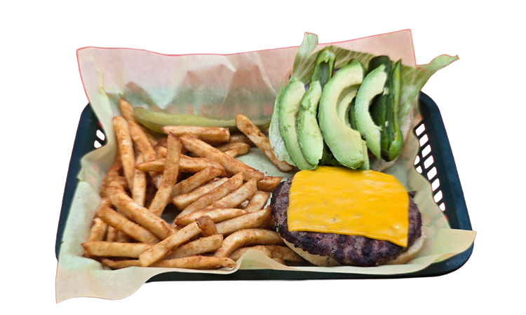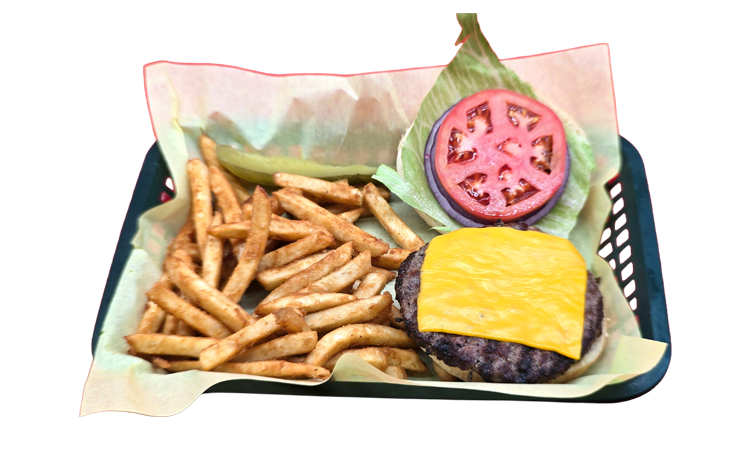 All natural 1/3 pound burger topped with American cheese and served with lettuce, tomato, onion, and mayonnaise.