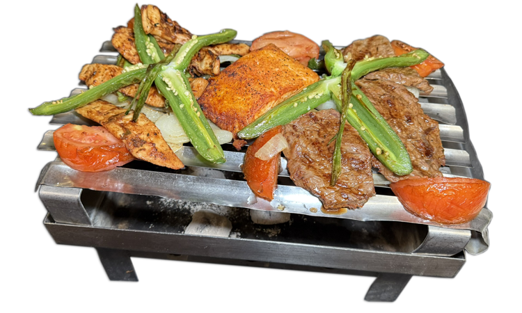 Charbroiled meats marinated and broiled to perfection with mixed vegetables and served with salad and homemade tortillas. Choice of chilaquiles or rice and beans. Served at your table on our tabletop grill.