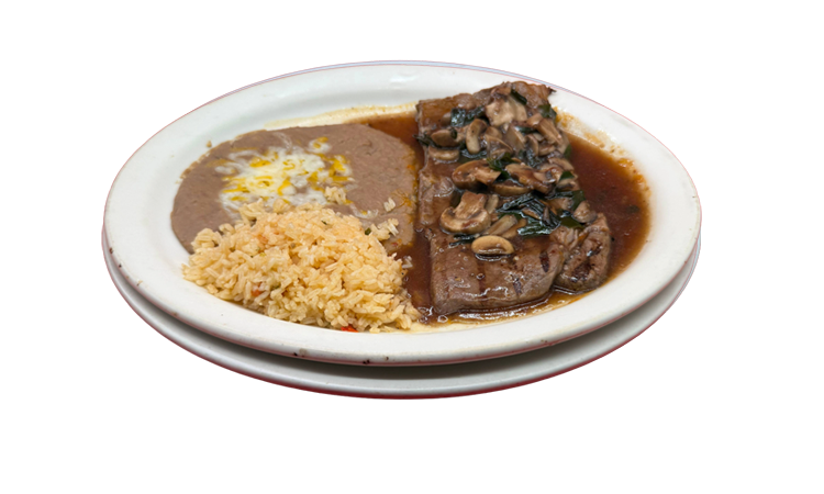 An 8oz. Steak grilled and topped with a tasty mushroom sauce $ 18.25
