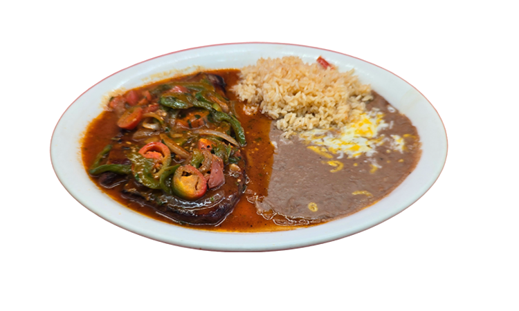 Generous Top Sirloin cut simmered in a jalapeño, roasted garlic, bell pepper, onion, cilantro, tomatoes, and special sauce. $18.95