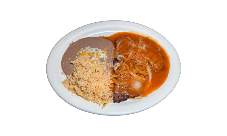 Top Sirloin steak simmered in its own juice with onions and a special red sauce. $18.25
