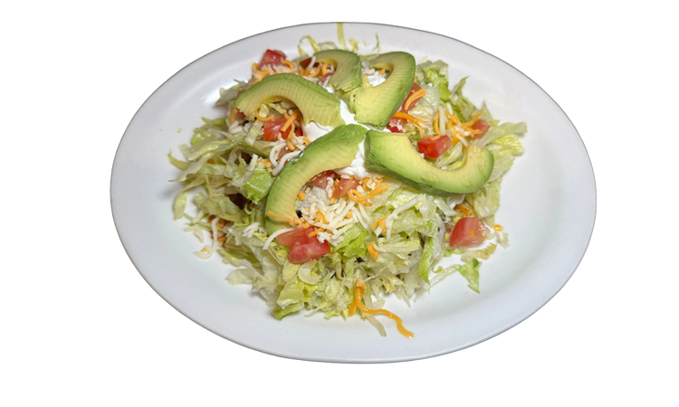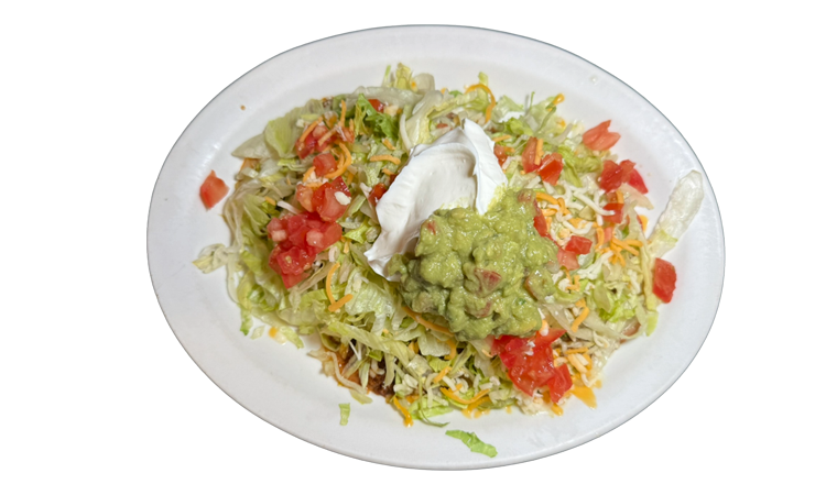 Corn tostada layered with beans, melted cheese, beef or chicken, tomatoes, lettuce, sour cream, and slices of fresh avocado. $11.95